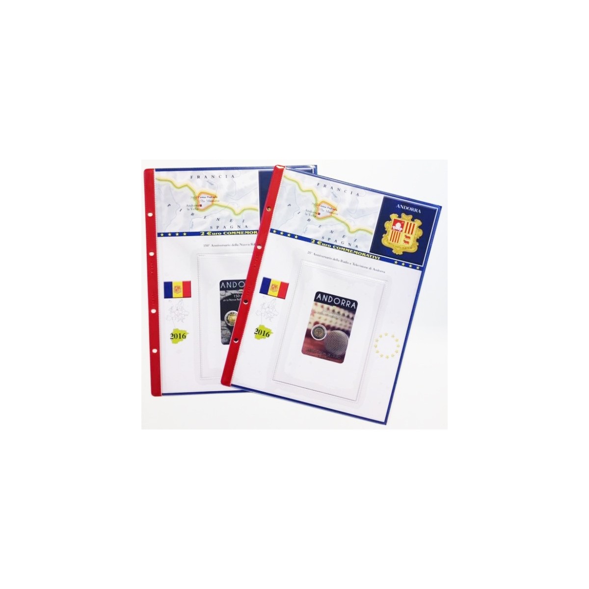 Fogli di aggiornamento per i 2€ commemorativi di Andorra emessi nel 2016 in Blister.