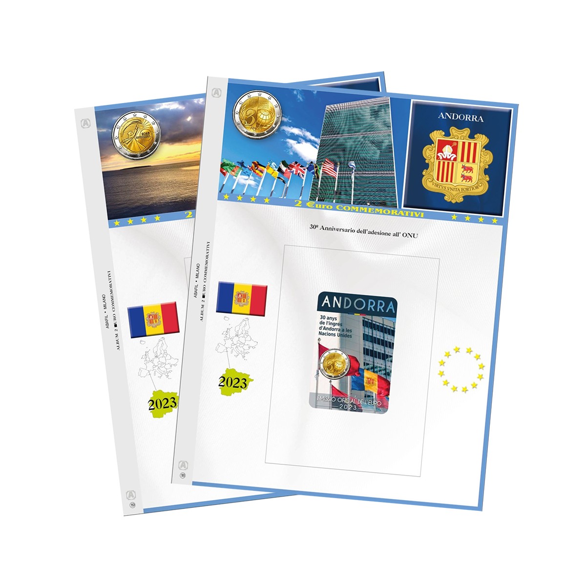 Fogli di aggiornamento per il 2€ commemorativo di Andorra in Blister.