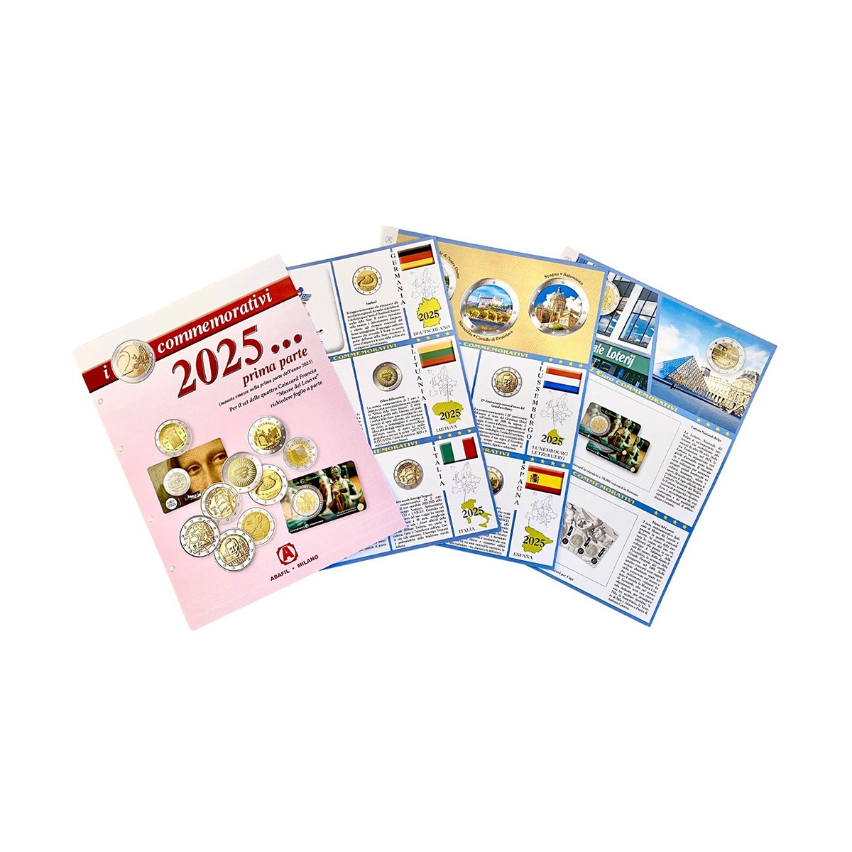 Fogli di aggiornamento per i 2€ commemorativi emessi da gennaio a maggio 2025.