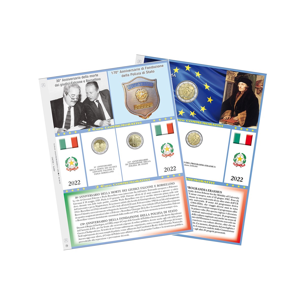 2 fogli con le riproduzioni dei 2€ commemorativi