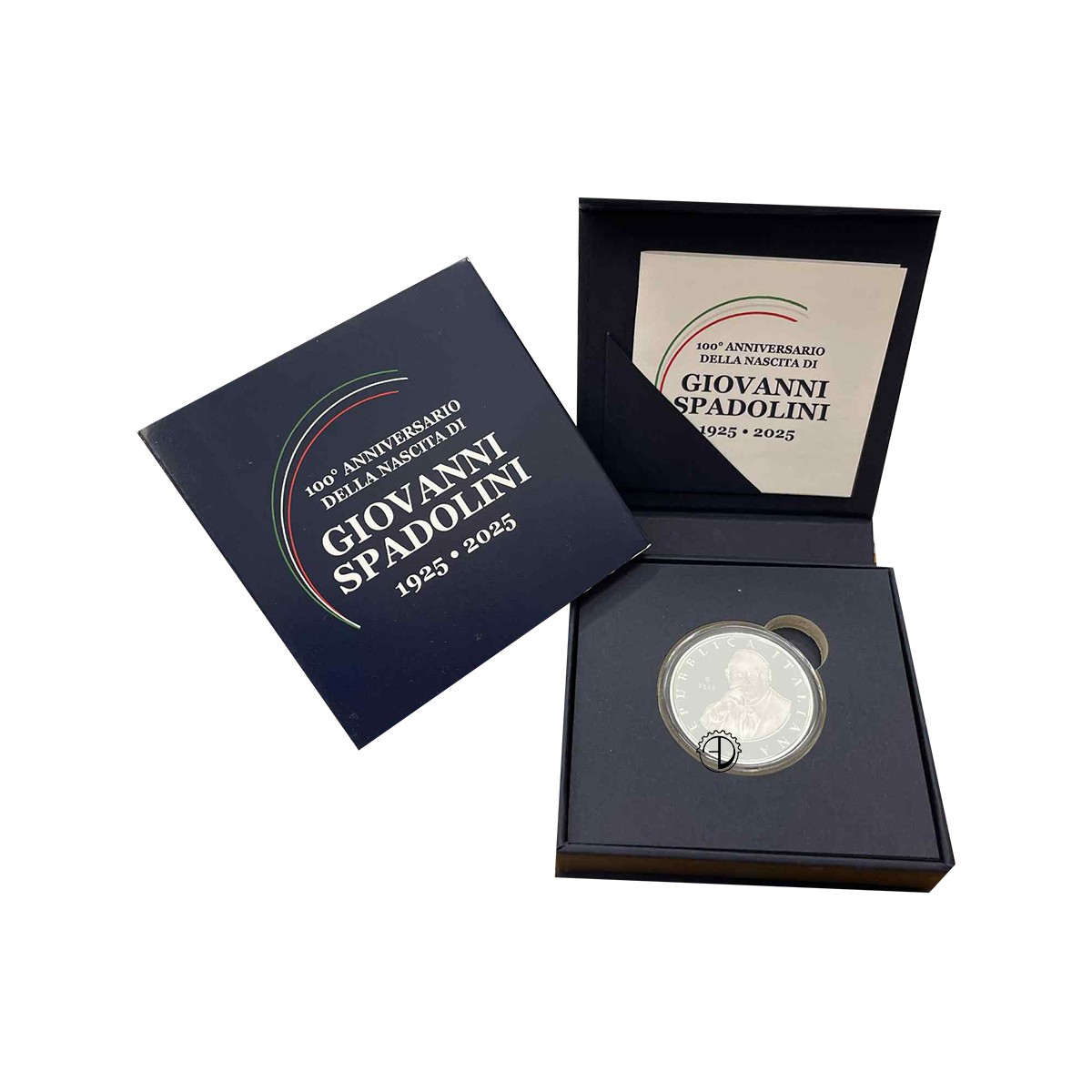 Rovescio: Rappresentato al centro un particolare dell’aula del Senato della Repubblica. Nel giro la scritta “Giovanni Spadolini” e le due date “1925” e “2025”. In basso “5 EURO”, valore nominale della moneta.