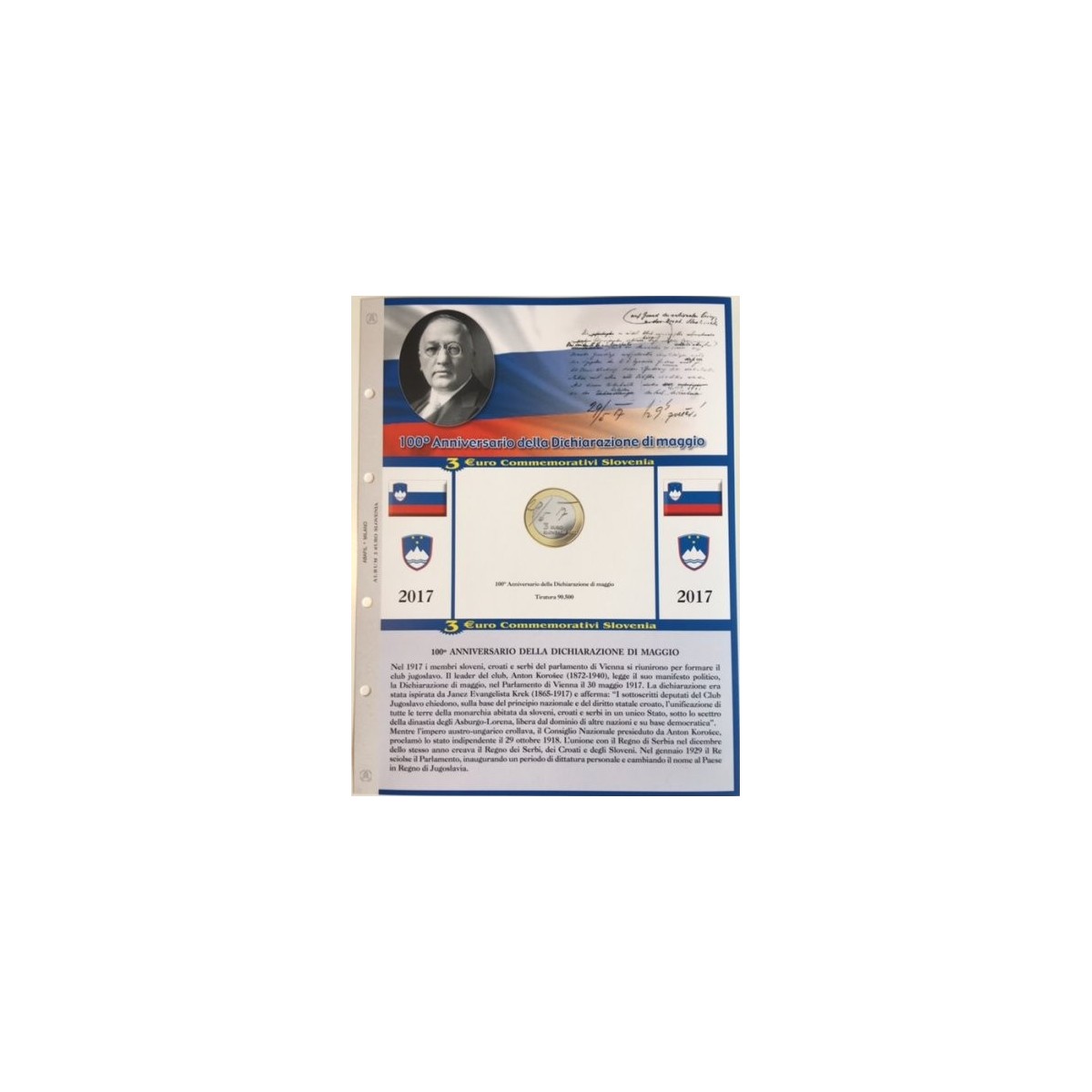 Foglio per i 3€ commemorativi della Slovenia