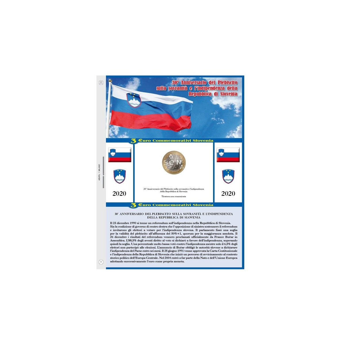 Foglio per i 3€ commemorativi della Slovenia