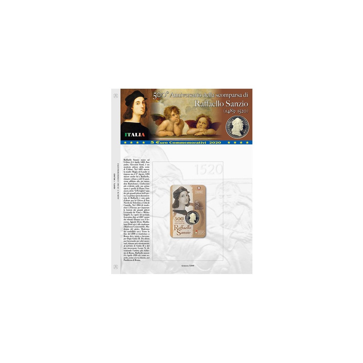 Foglio per il 5€ commemorativo di Italia