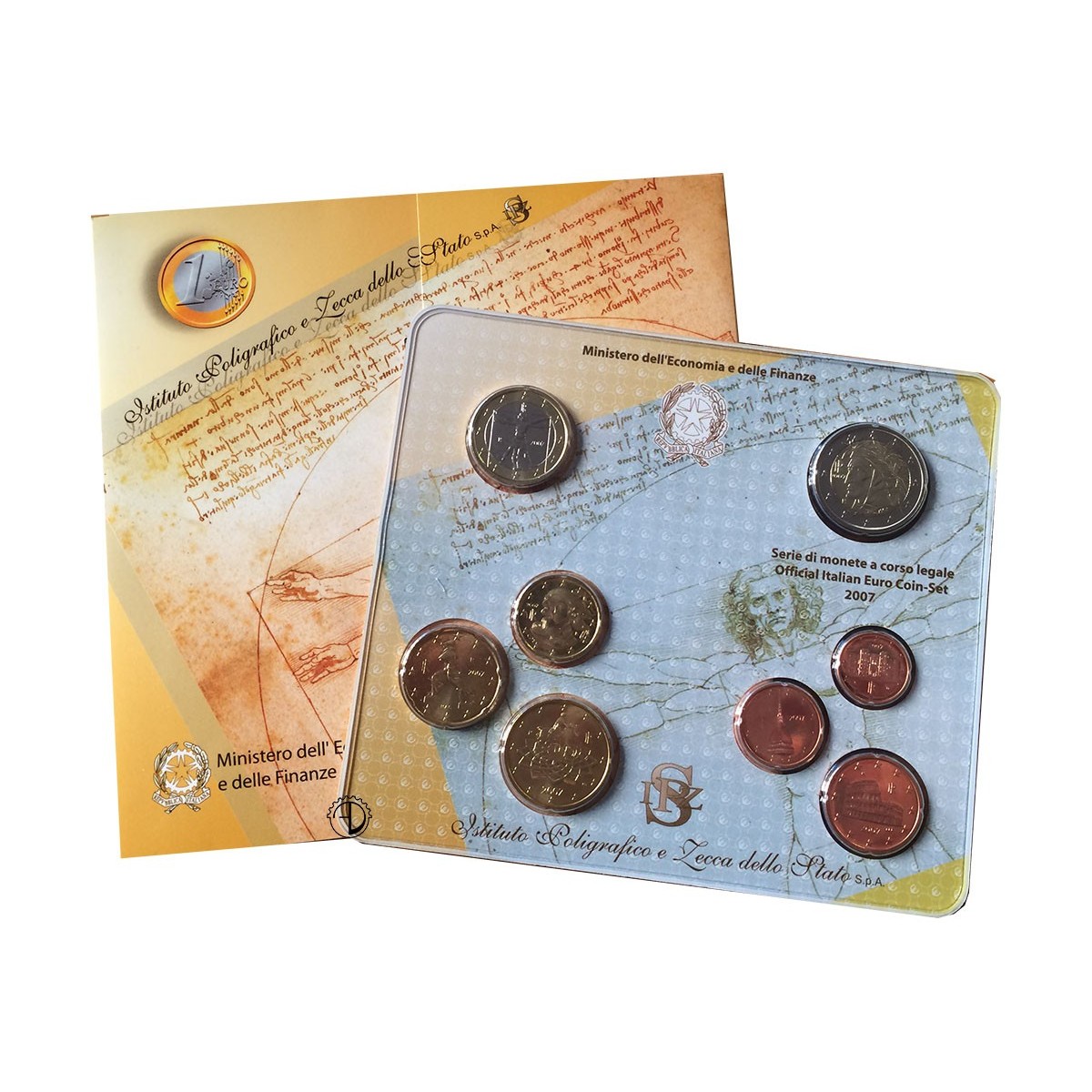 Questa divisionale è composta da 8 pezzi nella versione FDC, costituita dalle monete da 1 – 2 – 5 – 10 – 20 e 50 eurocent – 1 e 2 euro.