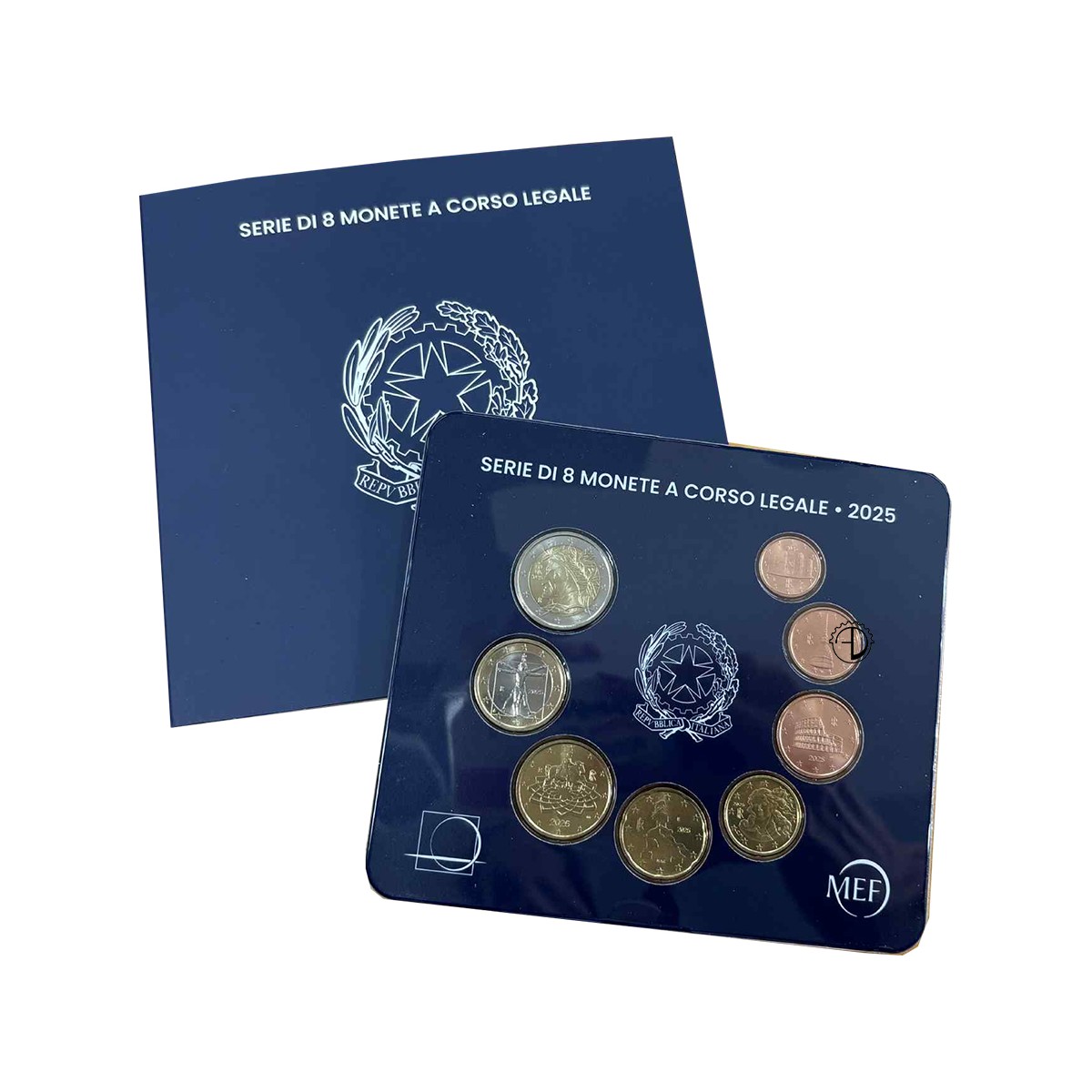 Questa divisionale è composta da 8 pezzi nella versione FDC, costituita dalle monete da 1 – 2 – 5 – 10 – 20 e 50 eurocent – 1 e 2 euro.