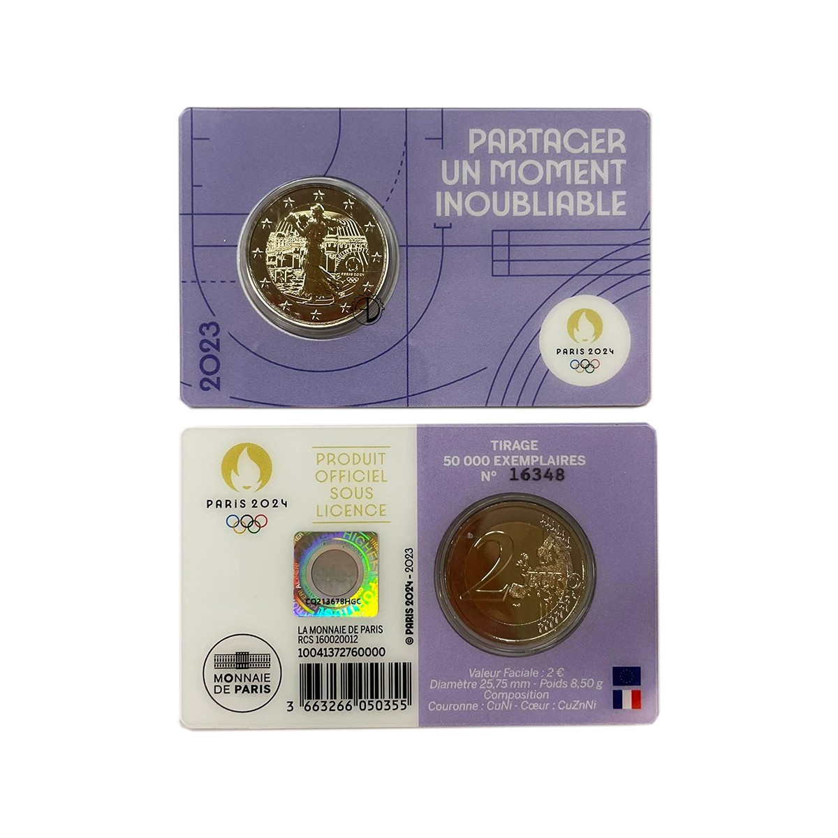 Il disegno della moneta raffigura la «seminatrice», figura nazionale e icona della numismatica francese, nell'atto di praticare il pugilato - precursore della boxe moderna - con riferimento ai Giochi olimpici dell'antichità. Sulla moneta la silhouette della seminatrice è rappresentata in primo piano davanti al Pont-Neuf e alla zona circostante, un'immagine classica dell'Ile de la Cité, elemento imprescindibile del panorama parigino. Sullo sfondo è rappresentata una pista di atletica in cui è inserito, sul lato destro, l'emblema di Parigi 2024. Sotto l'arco del ponte, sul parapetto e nella Senna figurano l'anno, l'acronimo RF e il marchio della zecca.