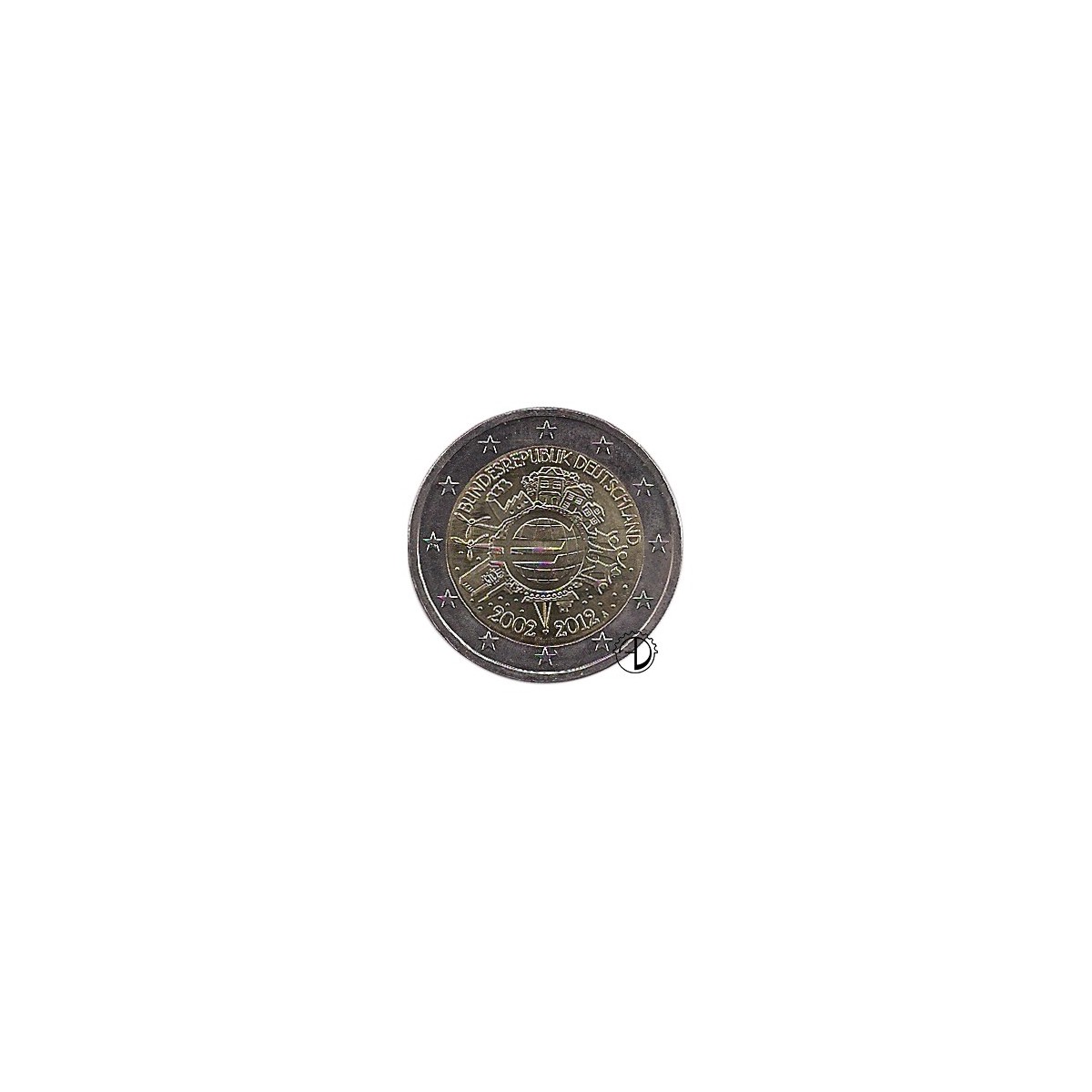Al centro il disegno che simboleggia l'importanza che l'euro riveste per la vita dei cittadini (rappresentata dalle persone), gli scambi (la nave), l'industria (la fabbrica) e l'energia (le centrali eoliche). Al di sopra ad arco il nome del paese emettente nella o nelle lingue nazionali; in basso le date “2002-2012”; sul bordo esterno 12 stelle a cinque punte rappresentanti l'Unione Europea. L'autore del disegno è Helmut Andexlinger, incisore professionista della zecca austriaca, le cui iniziali (AH) compaiono sotto la raffigurazione della torre della BCE.