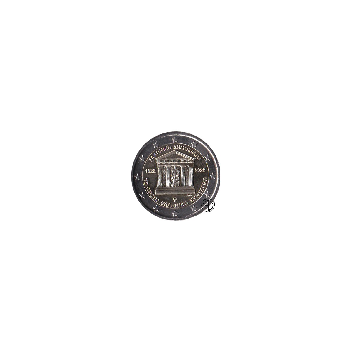 Il disegno raffigura l'Asklepieion, l'antico santuario greco delle arti curative a Epidauro, e di fronte ad esso la statua del dio greco delle arti curative "Asklepios". In alto la scritta "ΕΛΛΗΝΙΚΗ ΔΗΜΟΚΡΑΤΙΑ", a destra e a sinistra gli anni "1822" e "2022"; in basso il motivo di emissione "TO ΠPΩTO ΕΛΛΗΝΙΚO ΣYΝTAΓMA".