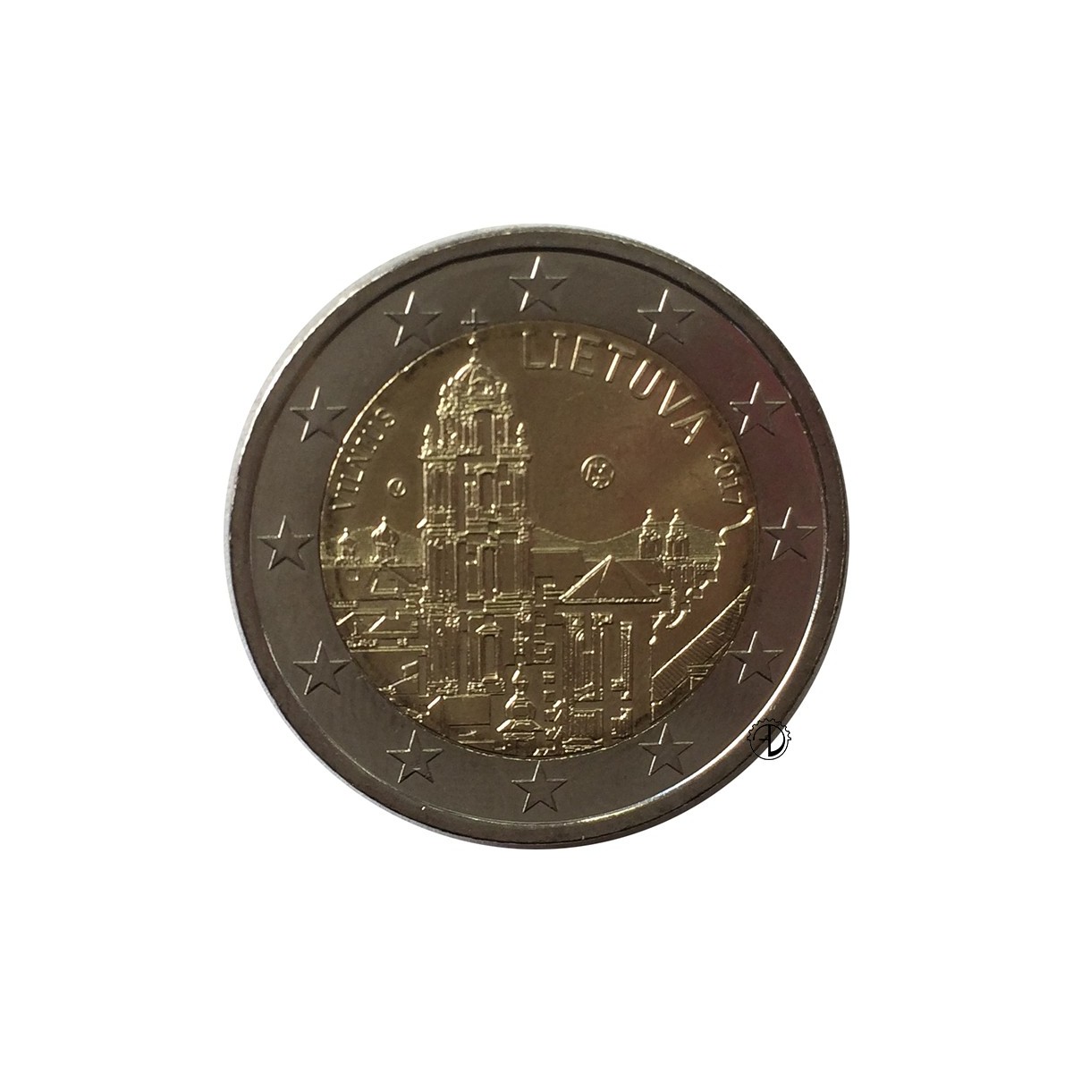 La moneta raffigura un particolare della città di Vilnius, il campanile della chiesa di San Giovanni, e la parte alta del tetto della chiesa di San Francesco, sullo sfondo la chiesa di San Michele e Costantino e la chiesa di Santa Caterina. In alto figura in semicerchio, il paese di emissione «LIETUVA», con a fianco l’anno di emissione «2017». Sotto al centro il marchio della zecca. Sulla parte sinistra in semicerchio il nome della città “VILNIUS” e subito a destra il marchio del progettista “V”. Sull’anello esterno della moneta figurano le 12 stelle della bandiera dell’Unione europea. Il bordo è finemente zigrinato con la scritta “LAISVĖ, VIENYBĖ, GEROVĖ” che tradotto in Italiano significa “Libertà Unità, Prosperità”.