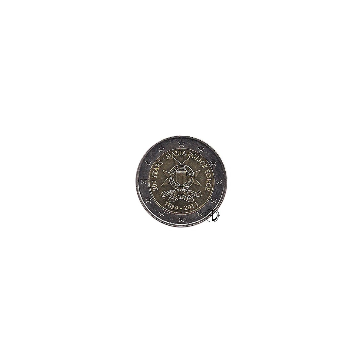 La moneta commemora il 200º anniversario della costituzione del Corpo di polizia di Malta, avvenuta mediante la proclamazione XXII del 1814. Si tratta dunque di uno dei corpi di polizia più antichi d'Europa. La faccia nazionale della moneta riproduce il distintivo del Corpo di polizia maltese con la scritta «200 anni — Corpo di Polizia di Malta» e le date 1814-2014.