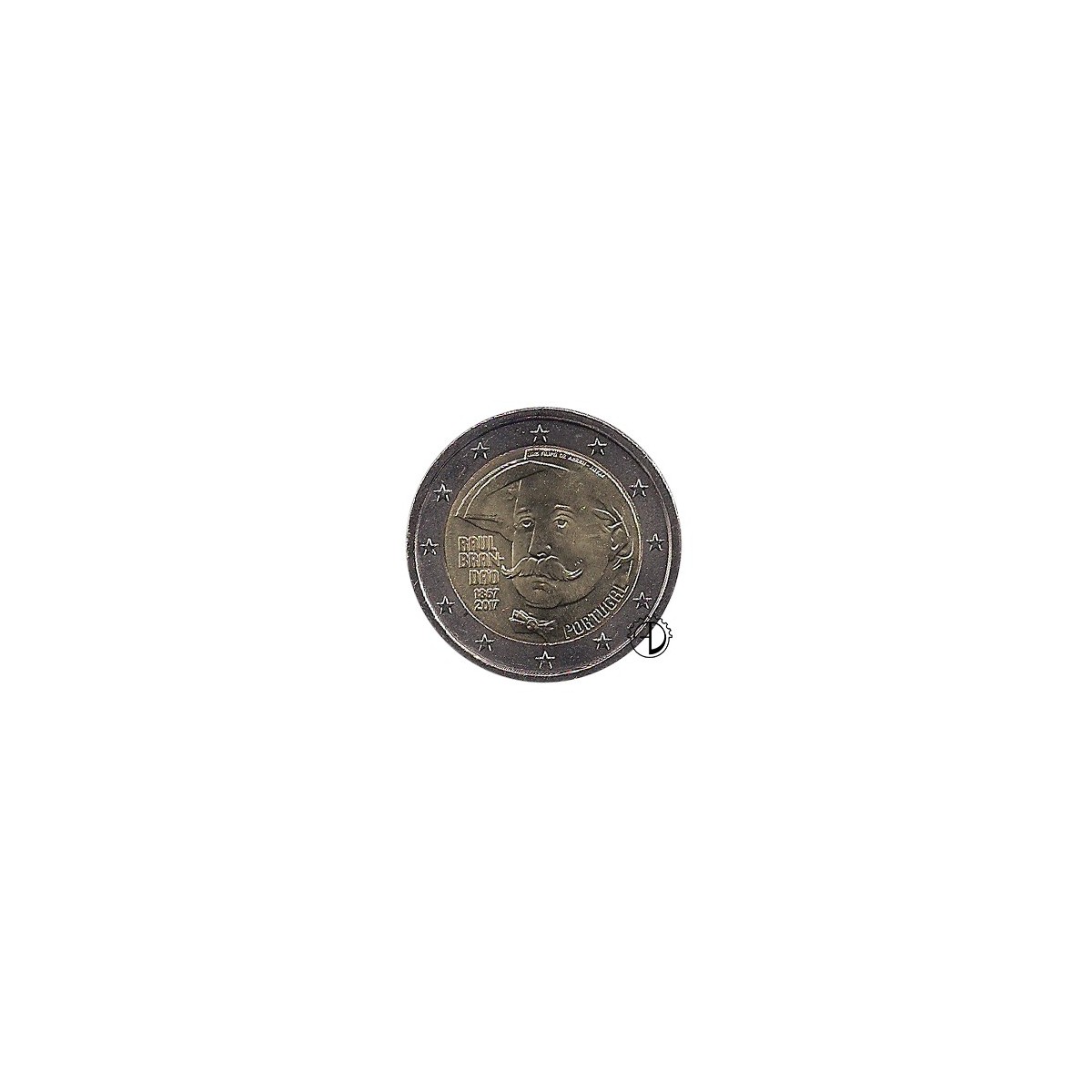Il disegno raffigura il volto di Raul Brandão. Sul lato sinistro è riportata la dicitura «RAUL BRANDÃO», al di sotto della quale sono indicati gli anni «1867» e «2017». In basso a destra è riportato il nome del paese di emissione «PORTUGAL» e in alto a destra figura il nome dell’autore «LUIS FILIPE DE ABREU», seguito dal marchio della zecca «INCM».