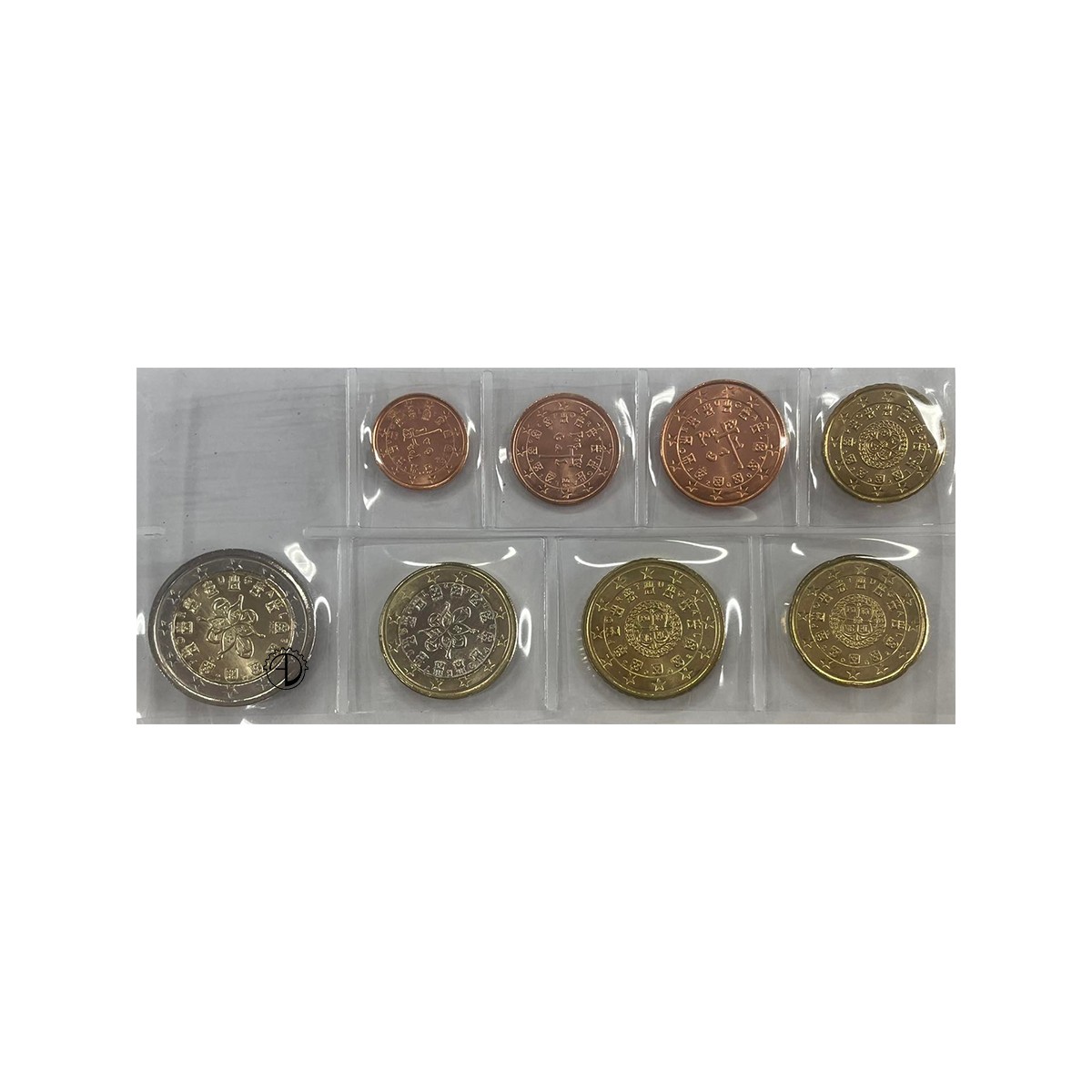 Le monete euro portoghesi mostrano tre differenti soggetti per ognuna delle tre serie di monete. In realtà, i tre soggetti sono molto simili, poiché contengono tutti gli antichi simboli reali e i sigilli, contenuti in un cerchio di sette castelli e cinque stemmi e la parola "Portugal". Nei disegni, opera di Vitor Manuel Fernandes dos Santos, figurano anche le 12 stelle della bandiera dell'Unione europea e l'anno di conio.