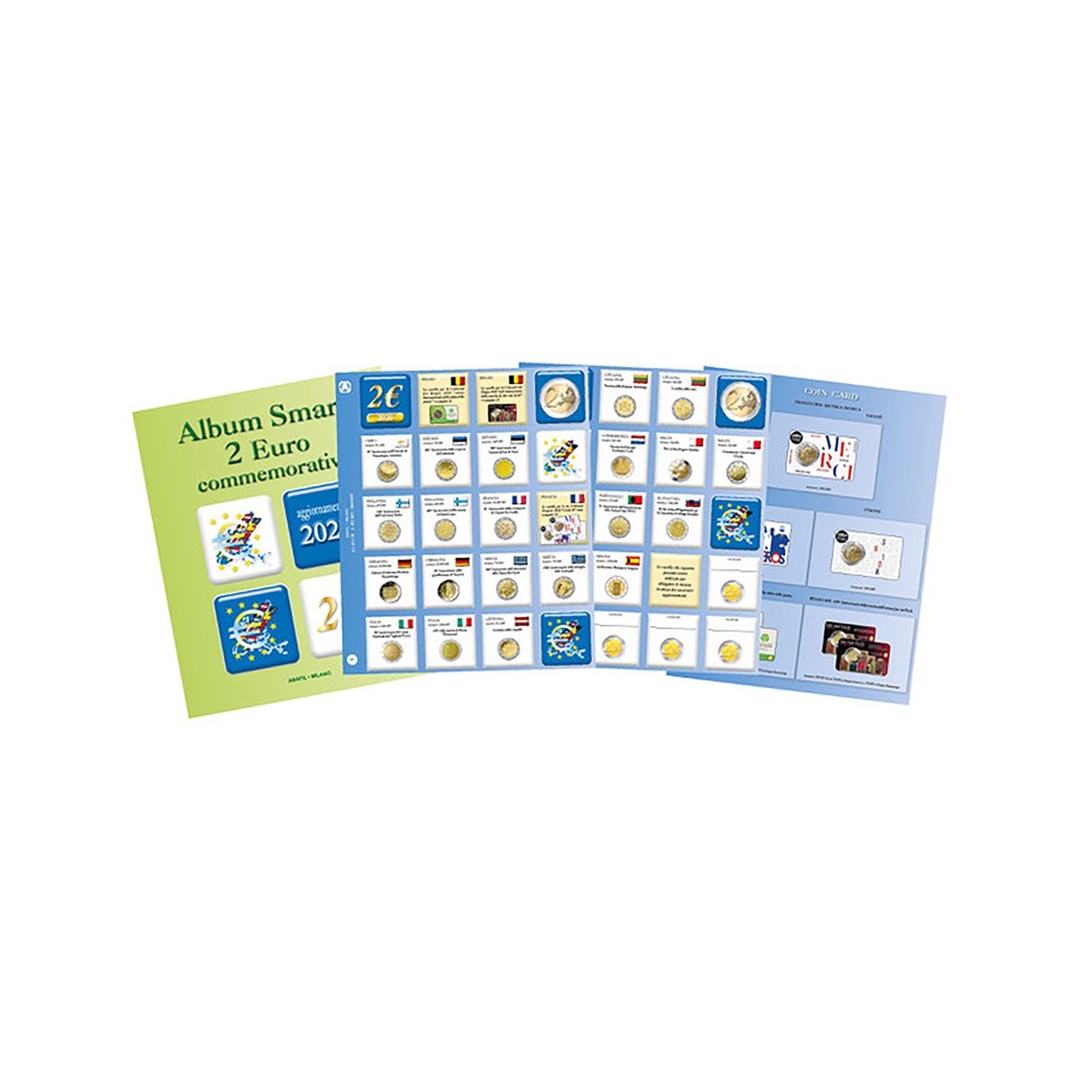 3 fogli3 con le riproduzioni dei 2€ commemorativi
