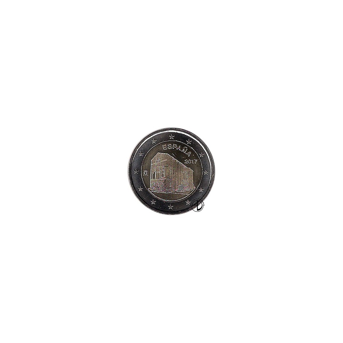 Il disegno raffigura in primo piano la chiesa di Santa Maria del Naranco. Nella parte superiore del cerchio interno, in senso circolare, figura il nome del paese di emissione «ESPAÑA», al di sotto del quale è indicato, a destra, l’anno di emissione «2017». Nella parte sinistra del cerchio interno figura il marchio della zecca.