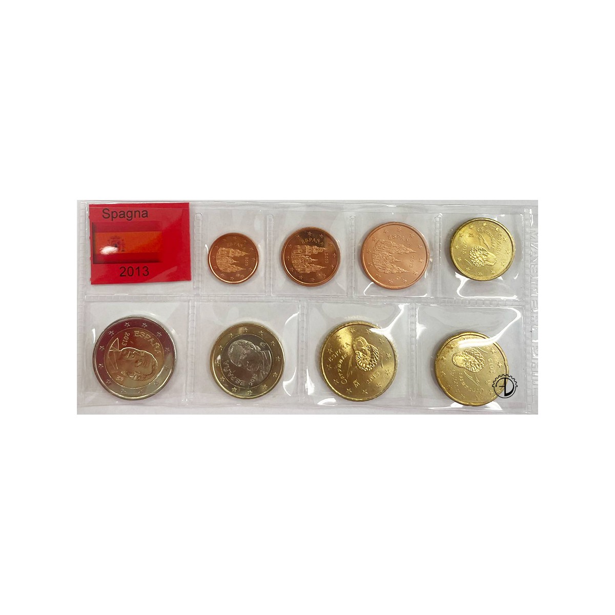 Le monete euro spagnole mostrano tre differenti soggetti per ognuna delle tre serie di monete. Le monete da 1, 2 e 5 centesimi sono state disegnate da Garcilaso Rollán e rappresentano la cattedrale di Santiago de Compostela; le monete da 10, 20 e 50 centesimi sono state disegnate da Begoña Castellanos e raffigurano il volto di Miguel de Cervantes; le monete da 1 e 2 euro mostrano, per la prima serie, l'effigie del re Juan Carlos I di Spagna e sono state disegnate da Luis José Diaz, mentre per la seconda serie mostrano l'effigie del re Filippo VI di Spagna. Tutti i tagli presentano le 12 stelle e l'anno di conio.