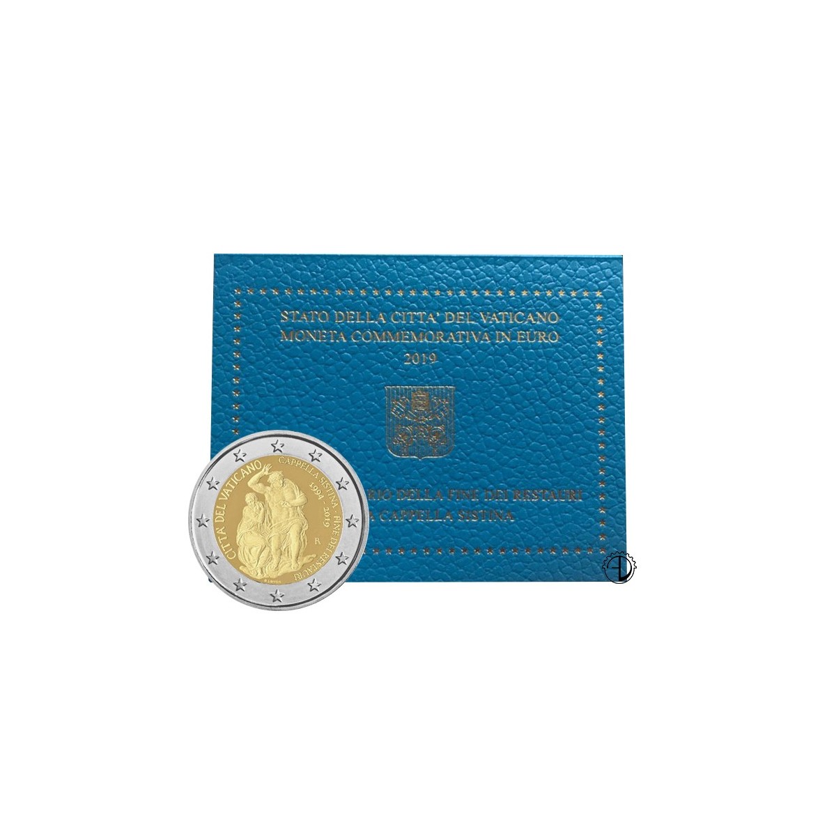 Il disegno rappresenta il Giudizio Universale nella Cappella Sistina. A sinistra, a semicerchio, figura l’iscrizione del paese di emissione «CITTÀ DEL VATICANO». A destra, a semicerchio, sono incise le diciture «CAPPELLA SISTINA – FINE DEI RESTAURI» e «1994-2019». Sul lato destro è riportato il marchio della zecca «R» e in basso è inciso il nome dell’artista «D. LONGO».